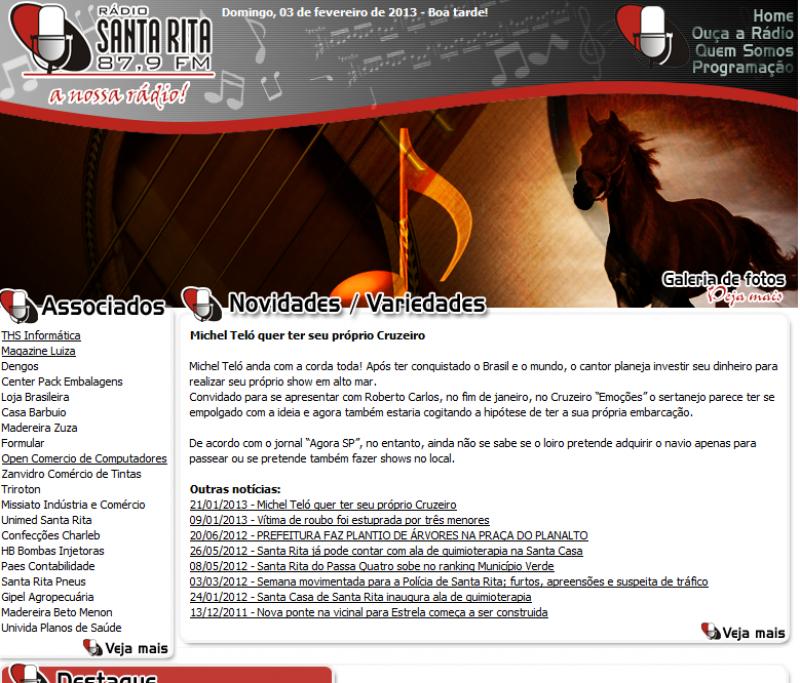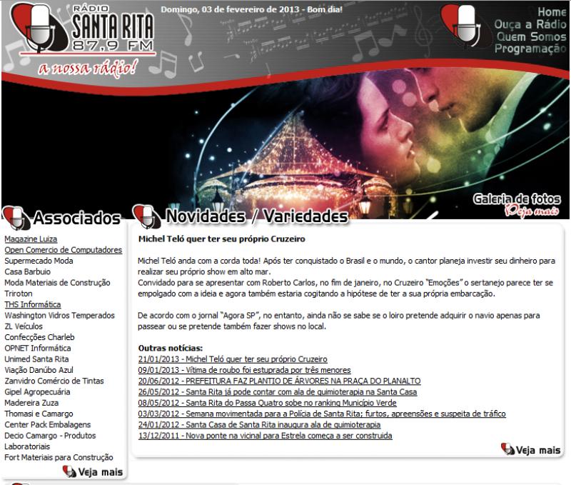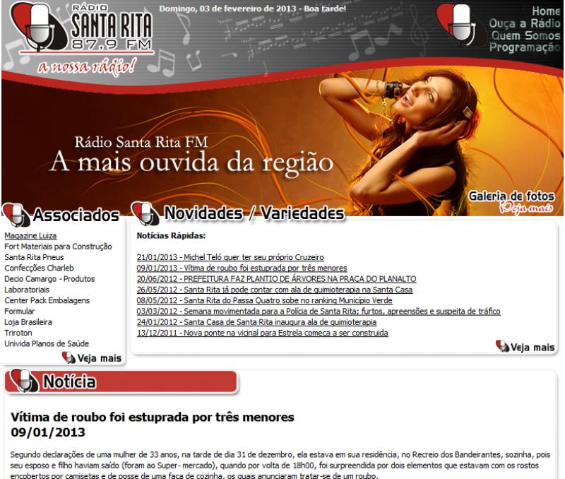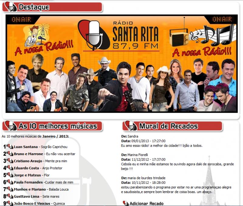O website Rádio Santa Rita FM continha notícias da cidade e policiais e variedades, uma lista de associados, a programação da semana, as 10 mais tocadas, sistema de mural de recados, formulário de contato, galeria de fotos e 2 plug-ins (Windows Media Player e Winamp) para ouvir músicas online diretamente do website.
