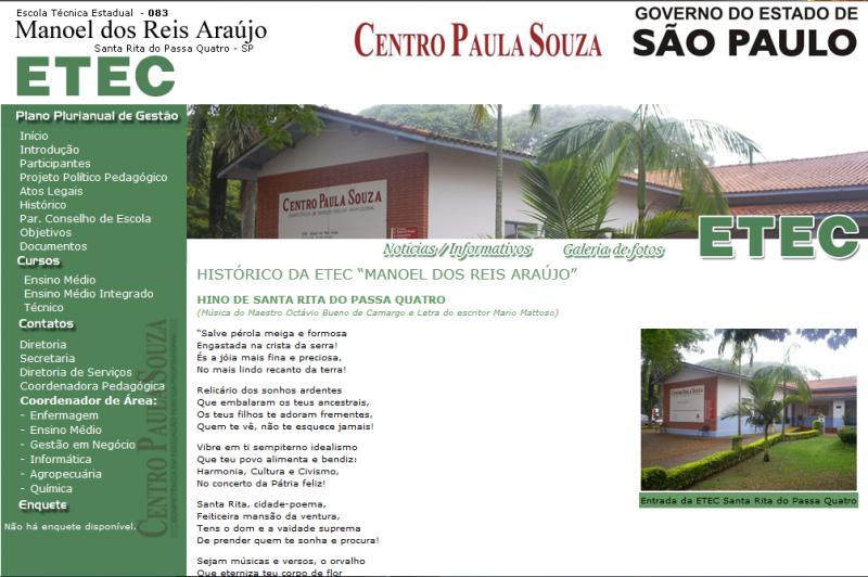 O website da ETEC Manoel dos Reis Araújo oferece para visitantes as notícias e informativos para seus alunos, galeria de fotos, informação sobre o plano plurianual, cursos e formulários de contato de diversos setores e sistema de enquetes.